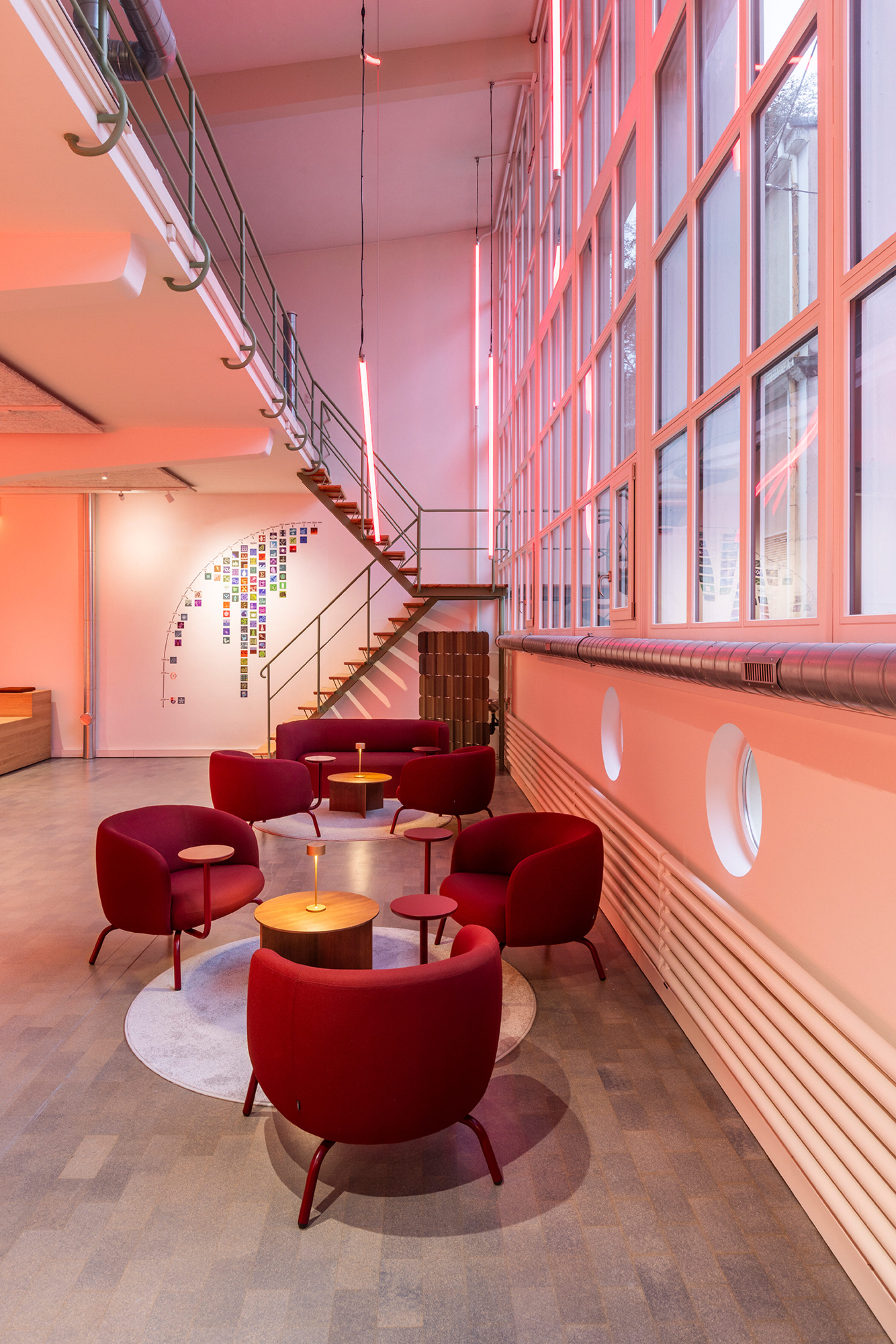 Both the facade and the interior spaces can be individually programmed thanks to media elements. This allows the timeless atmosphere of the modernist building to be transformed in line with the respective branding of its changing users. This is contemporary corporate communication in space!