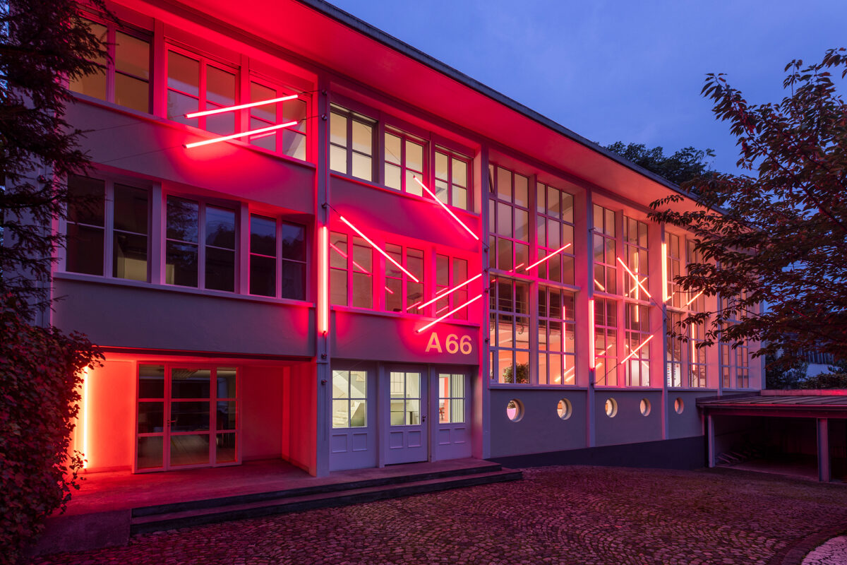A66 is an example of how an existing building can be revitalised thanks to precisely placed media gestures. Together with our partner companies, we succeeded in transforming the former printing plant into a modern dialogue platform.