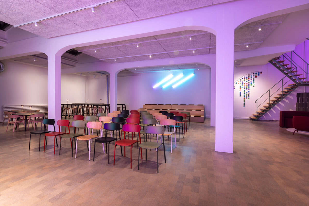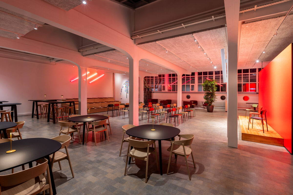 The A 66 is an extraordinary venue: timeless architecture combined with state-of-the-art technical equipment enables atmospheric conferences, symposia, networking events and workshops. Thanks to interior and exterior media components, the former printing works has now been transformed into a lively platform for dialogue.